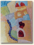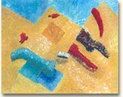 Frei improvisierte Formen und verschiedene Farben werden in Schichten mit dem Spachtel aufgetragen.